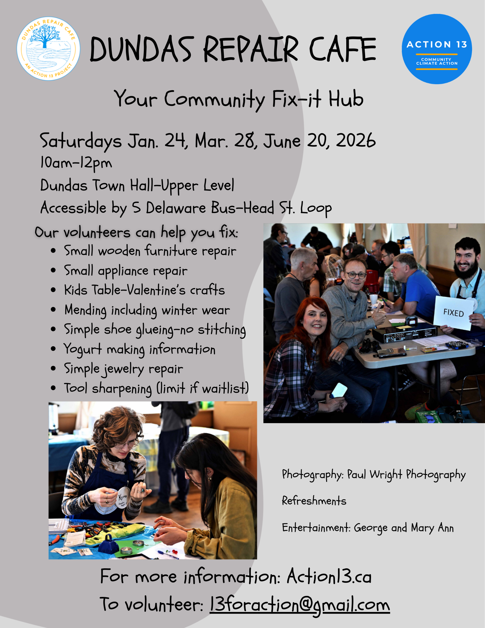 Drop off donations of winter coats, boots and winter clothing. These are delivered to downtown Hamilton organizations.